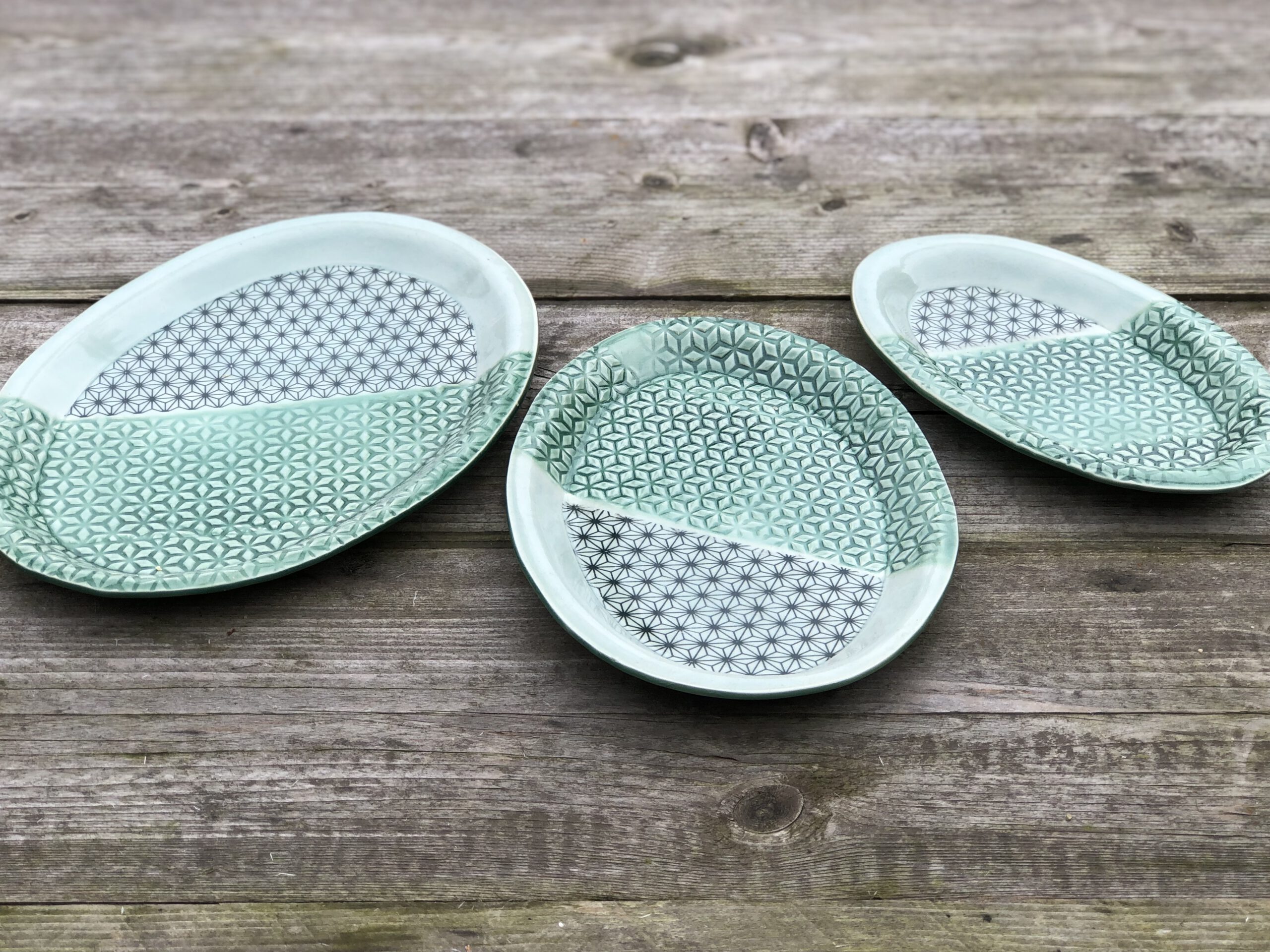 Ovale opdien schalen. Als set van 3 van groot naar klein te bestellen, of los per stuk. (zie andere foto´s)